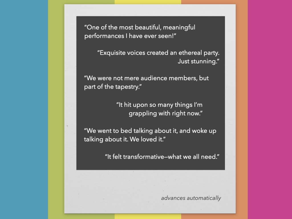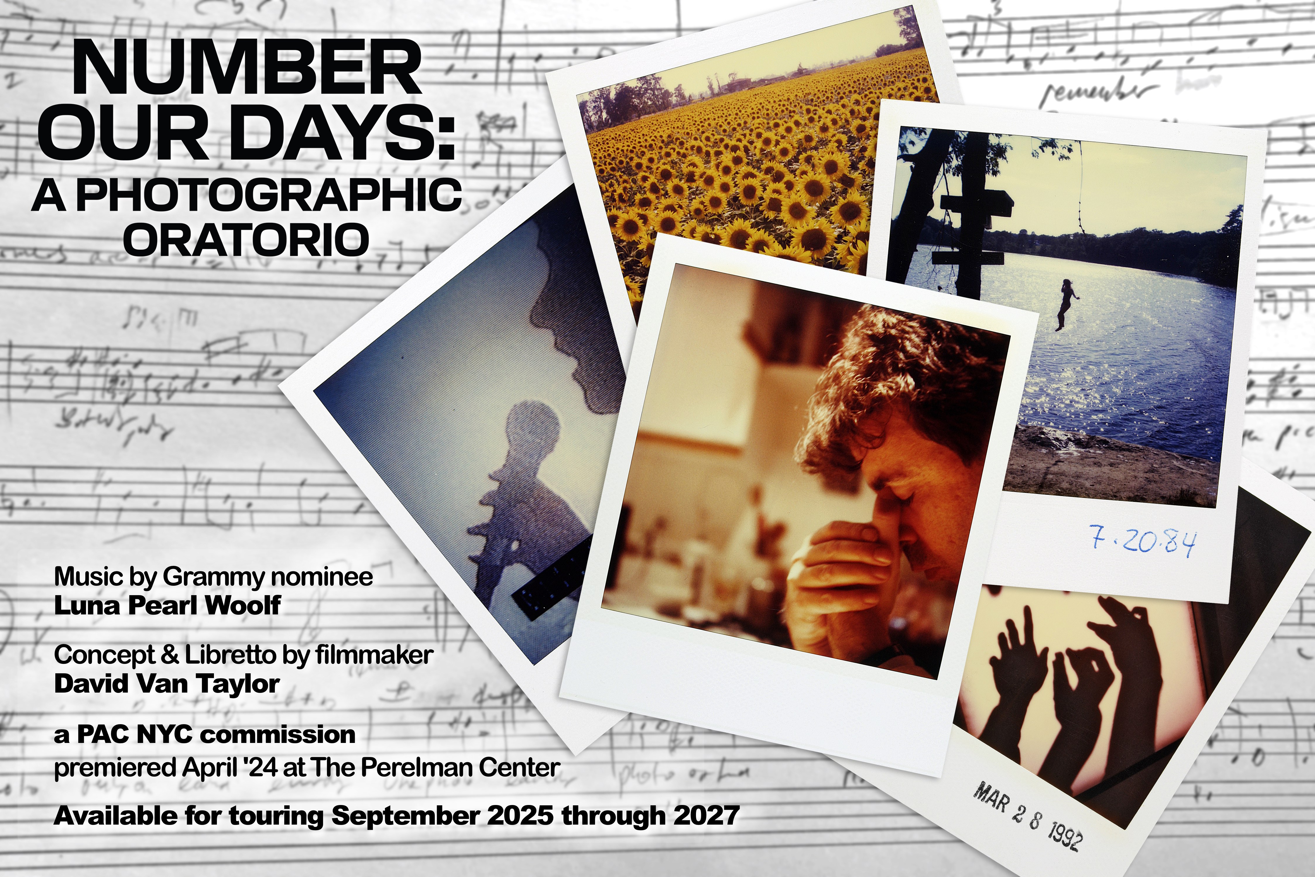 Each day for 18 years, Jamie Livingston documented his life by taking a single Polaroid—until his death at age 41. Then his “Photo of the Day” went online, creating an immediate global sensation years before Instagram launched. With music for chorus, orchestra, and soloists by Grammy nominee Luna Pearl Woolf (Fire & Flood) and a non-fiction libretto by acclaimed filmmaker David Van Taylor (Good Ol’ Charles Schulz), this multi-media oratorio explores our era’s strange alchemy of technology, memory, and community.
